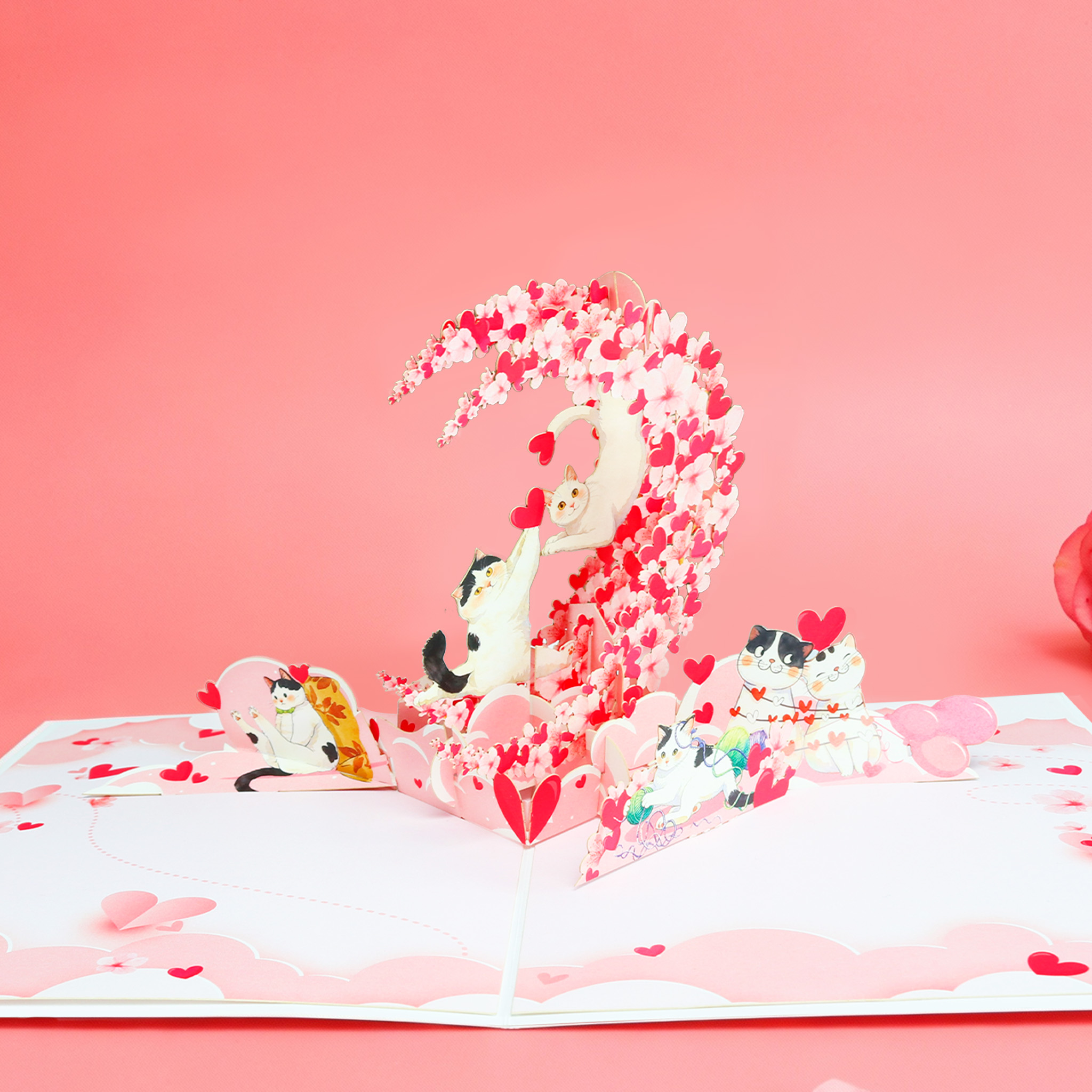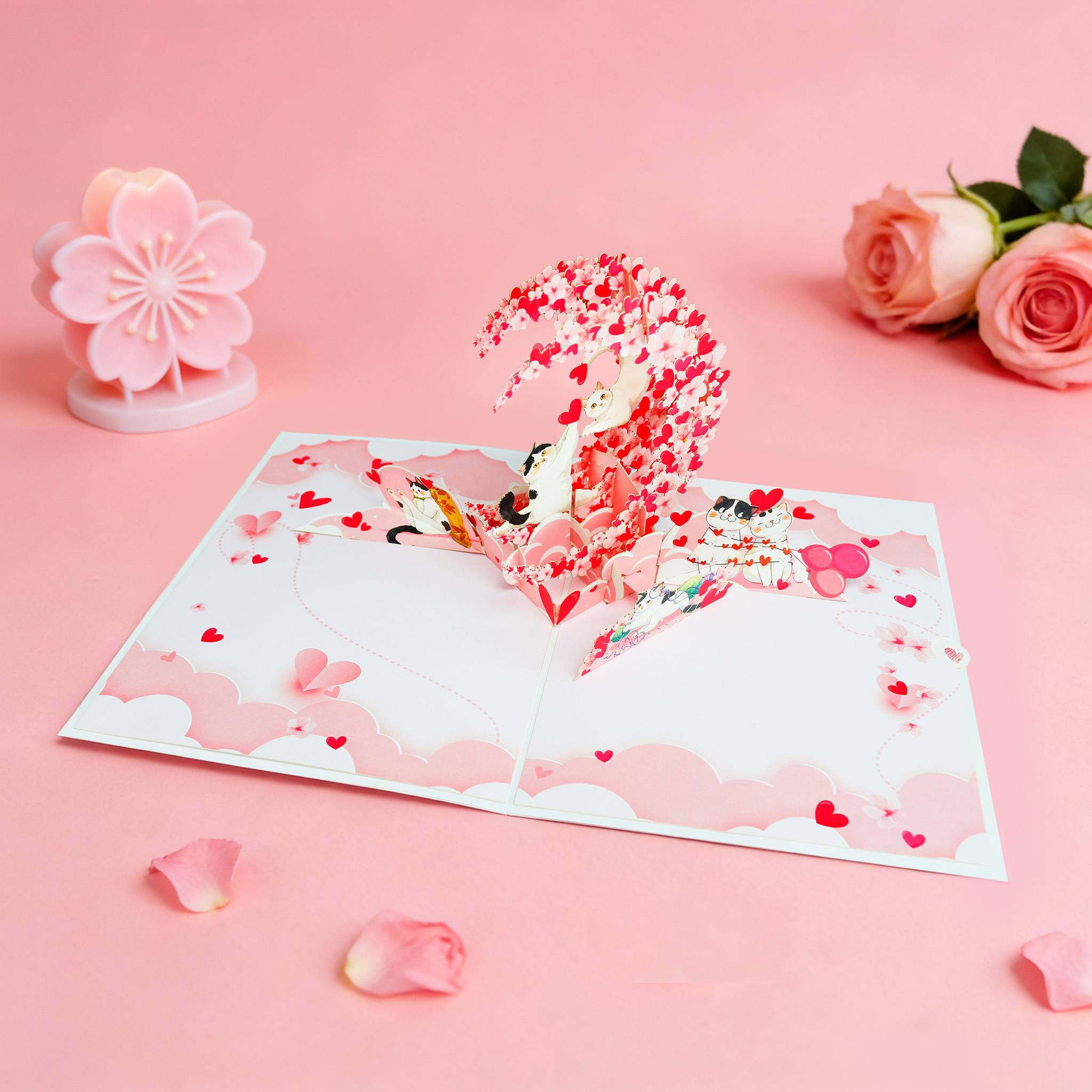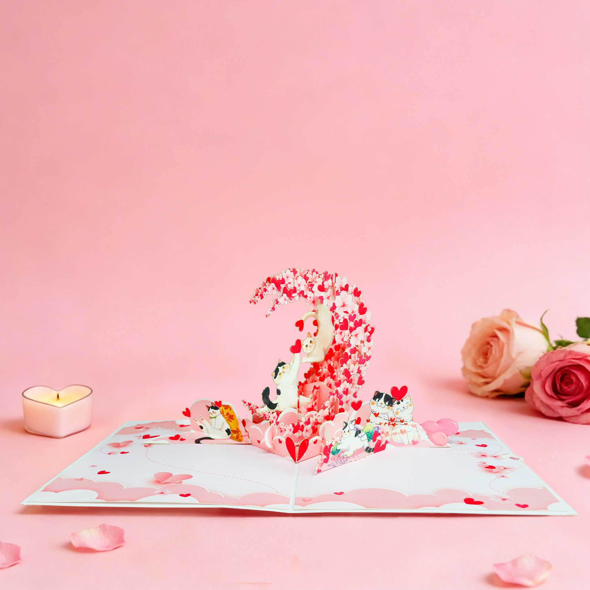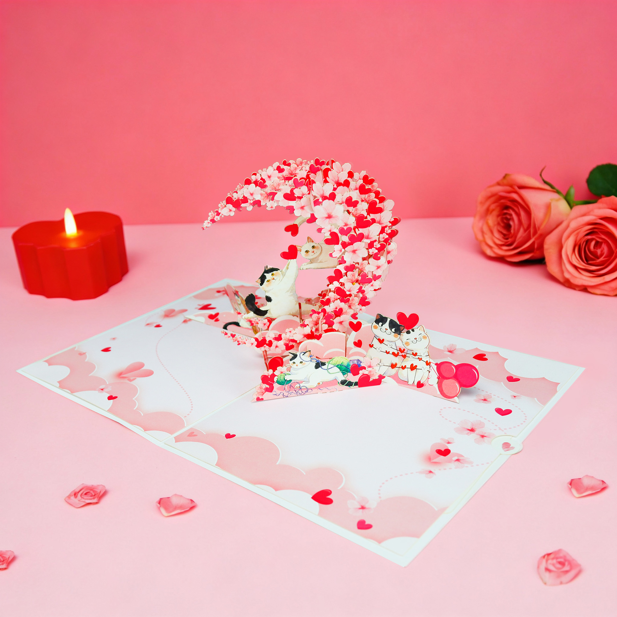 3D Pop-Up Heart & Cat Romantic Greeting Card