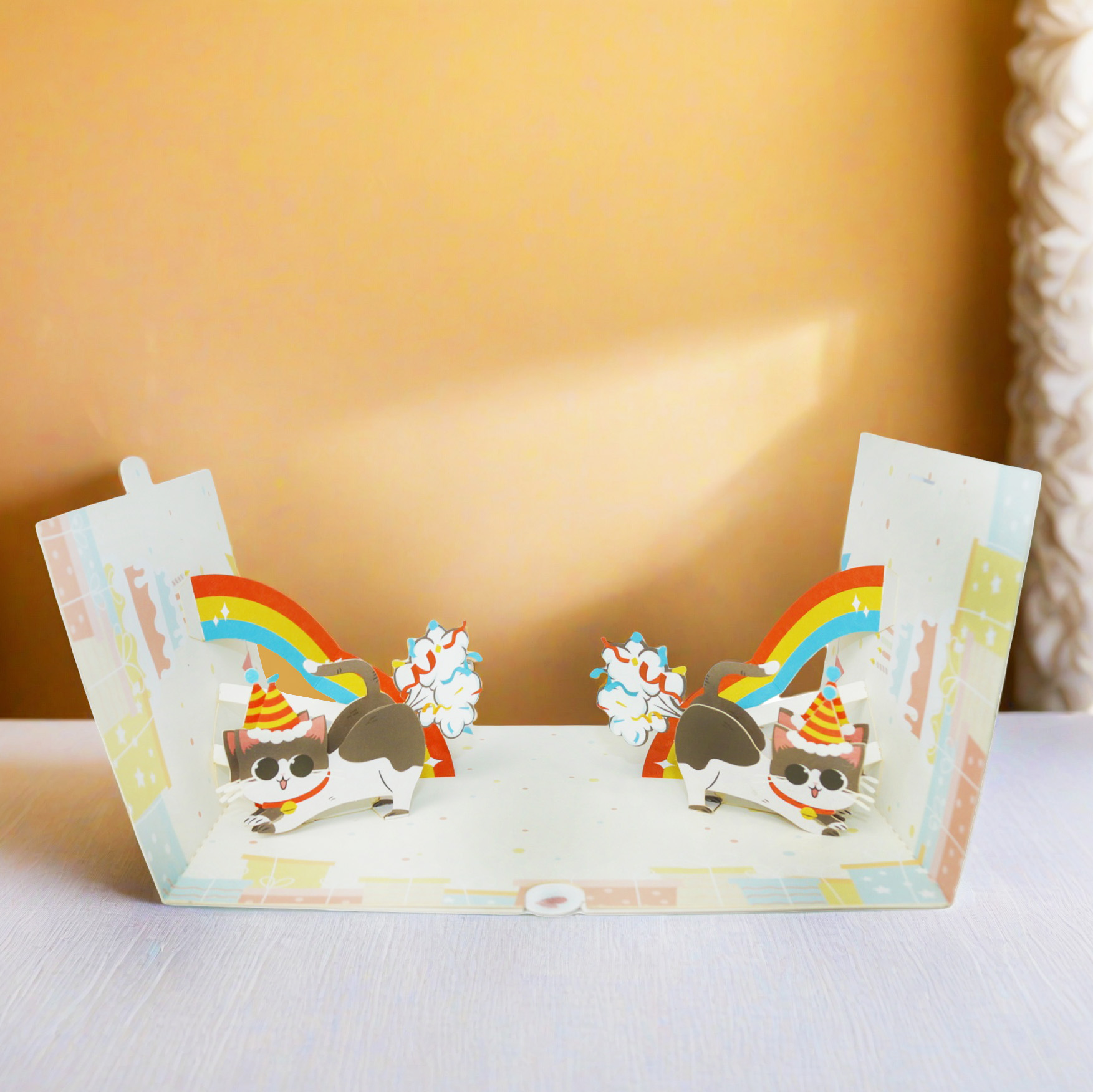 Cute Cat 3D Pop-Up Birthday Greeting Card – A Special Birthday Card with an Adorable Calico Cat in a Party Hat, 3D Rainbow Firework Scene, and Creative Foldable Design. Perfect Gift for Girlfriends, Friends, and Cat Lovers to Add a Delicate Sense of Ritual to Birthdays.