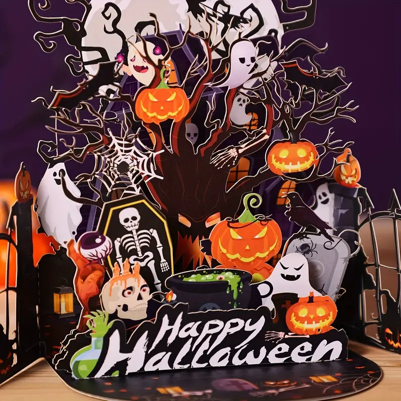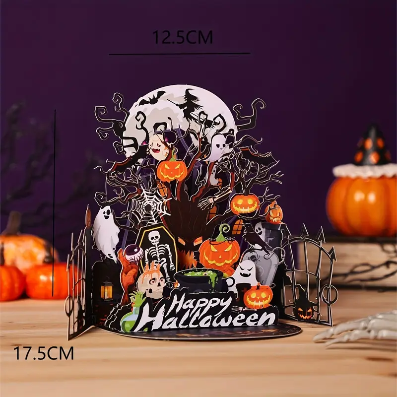 Wish your friends and family a happy Halloween with this Halloween – themed pop – up card that combines the best of traditional and contemporary design. The spooky and festive vibe of this card is perfect for anyone who loves Halloween elements like pumpkins, ghosts, and skeletons, or just loves the thrilling feeling of Halloween at the most enchanting time of the year. The vivid and intricate details on this card add an extra special touch and are sure to wow anyone who sees it.